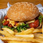 HAMBURGUESITA DE NUESTROS DELICIOSOS BONELESS CUBIERTOS DE SALSA A TU ELECCIÓN, MAYONESA, QUESO MANCHEGO LECHUGA Y ADEREZO RANCH