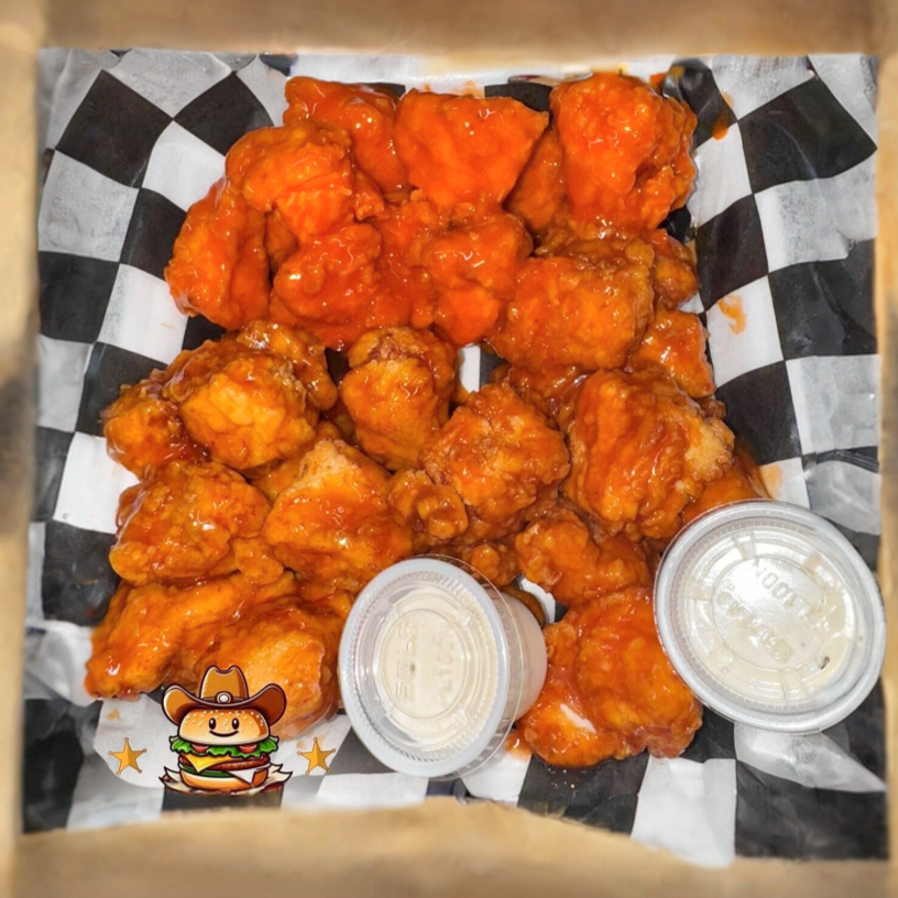 15 Piezas de boneless 100% pechuguita de pollo natural, bañados en tu salsa favorita.