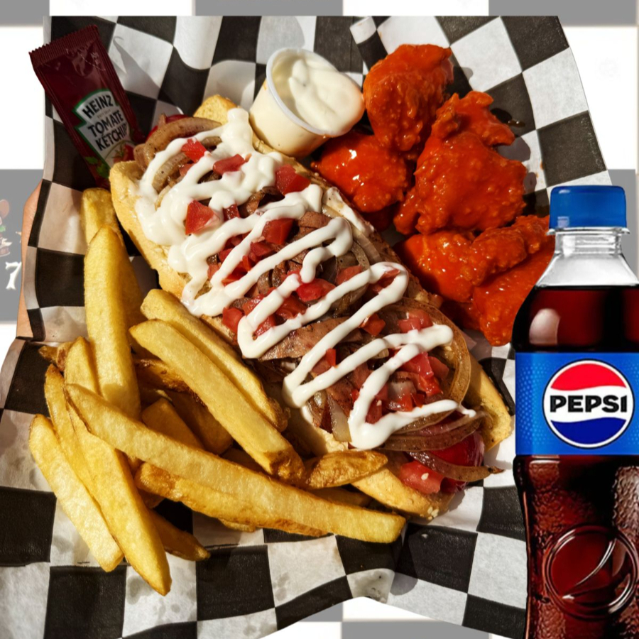 Carne de res, con dedos de queso, aros de cebolla y un toque de salsa habanero.