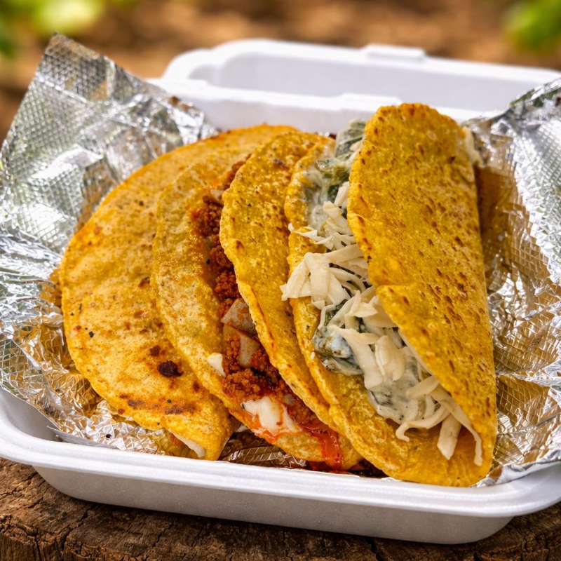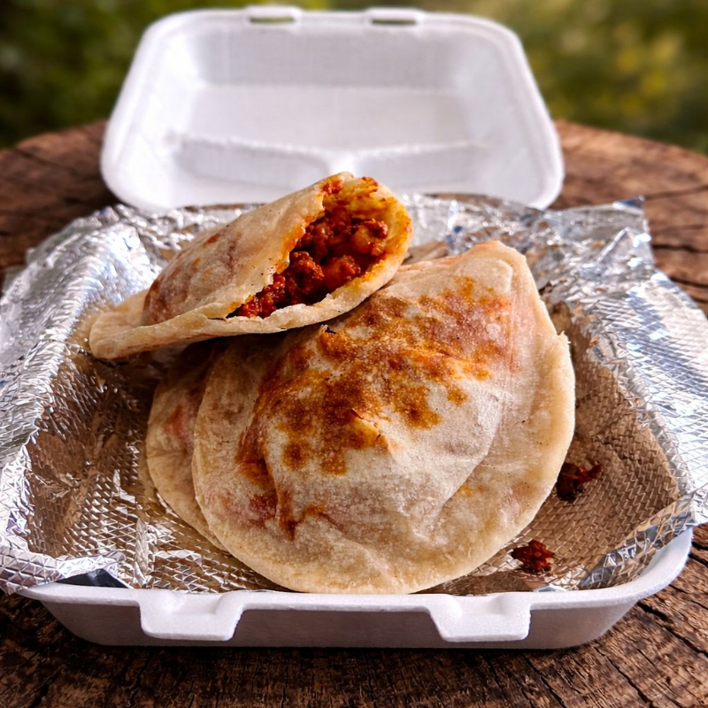 Quesadilla de nixtamal hechas a mano, rellenas de guiso. Elige tu favorito