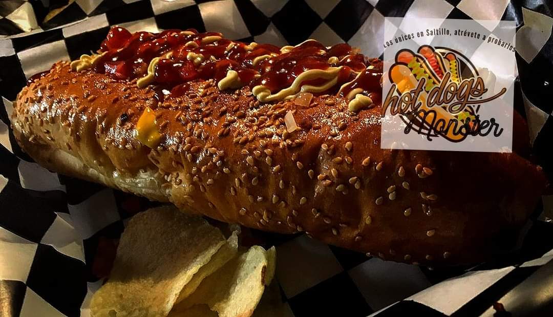 cebolla asada y sazonada, moztasa, mayonesa, queso amarillo, catsup y elaborado con pan artesanal
