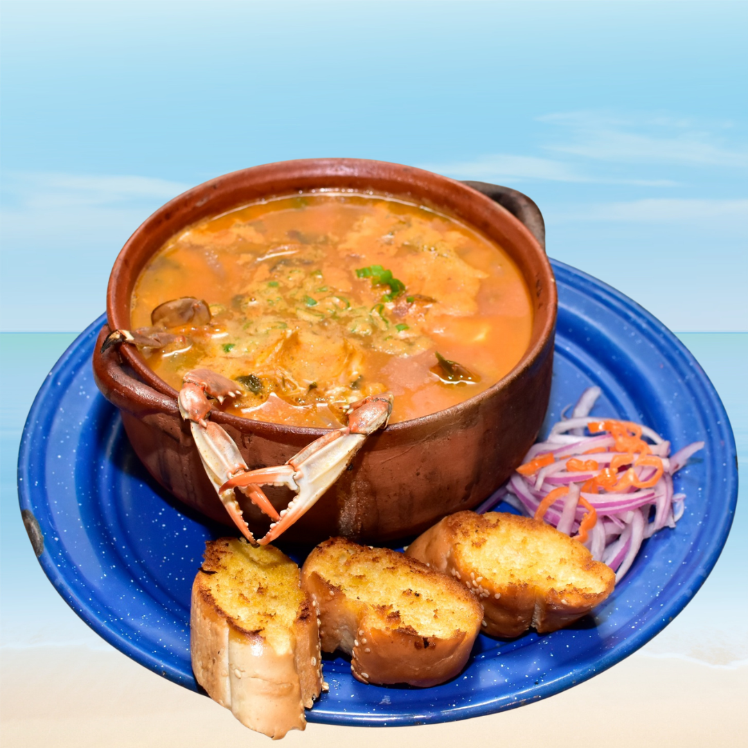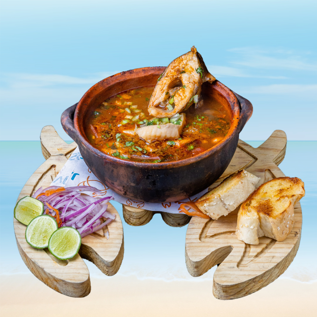 Caldo de la casa con pescado, camarón , cilantro y apio 200 gr