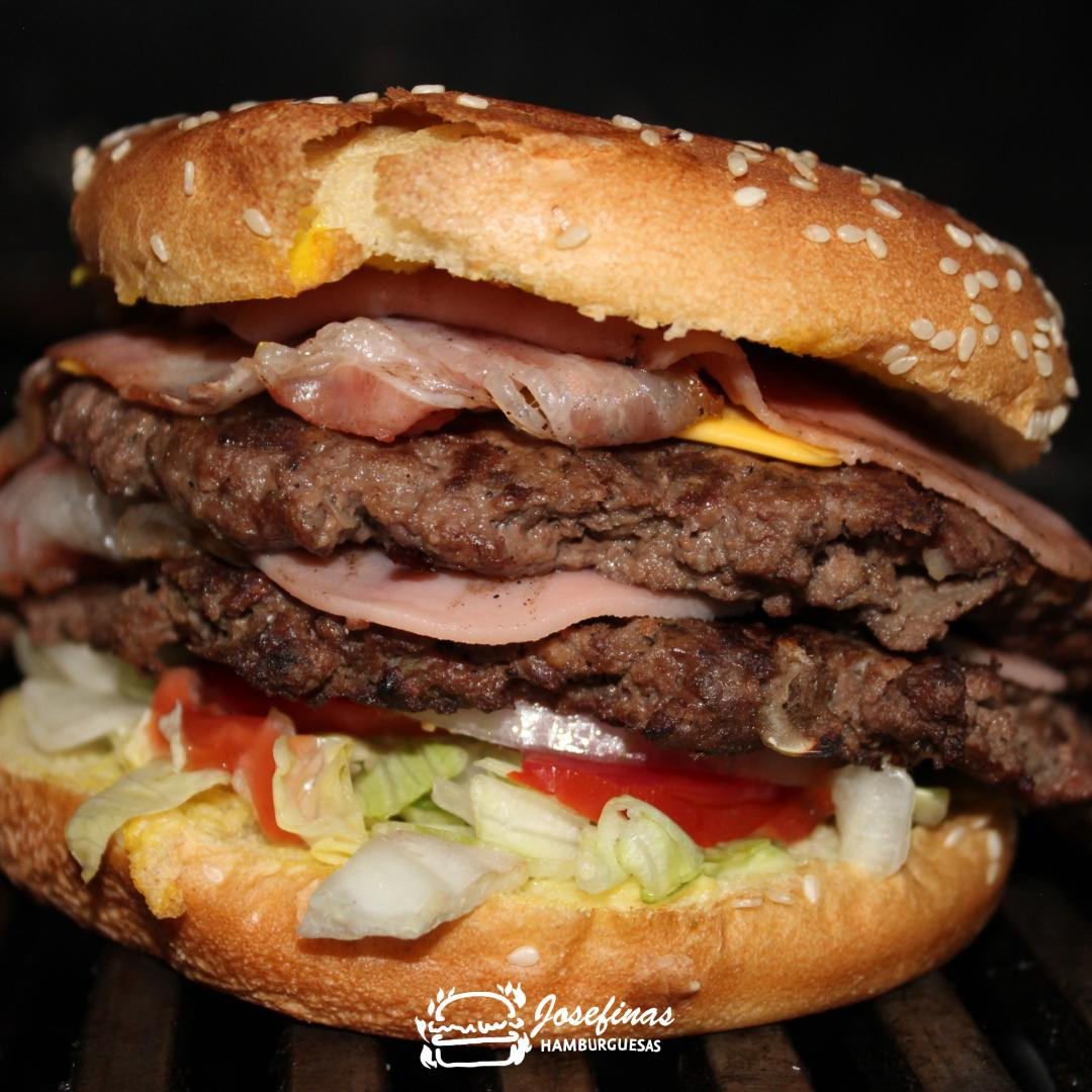 Carne, queso cheedar, jamón, tocino, aderezo ranch, tomate, cebolla, lechuga, aguacate.