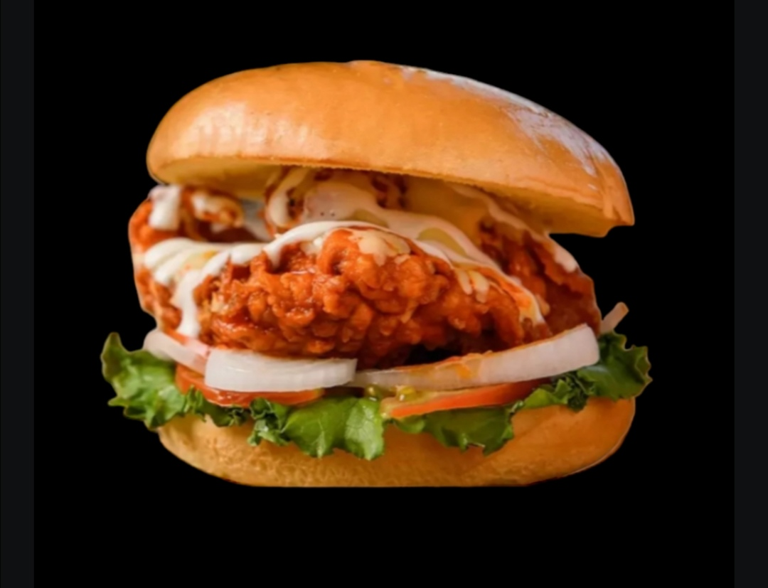 Pollo empanizado (100gr), bañada en salsa de tu eleccion, aderezo de tu eleccion, queso manchego, lechuga, tomate, acompañada con papas ala francesa 100 gr