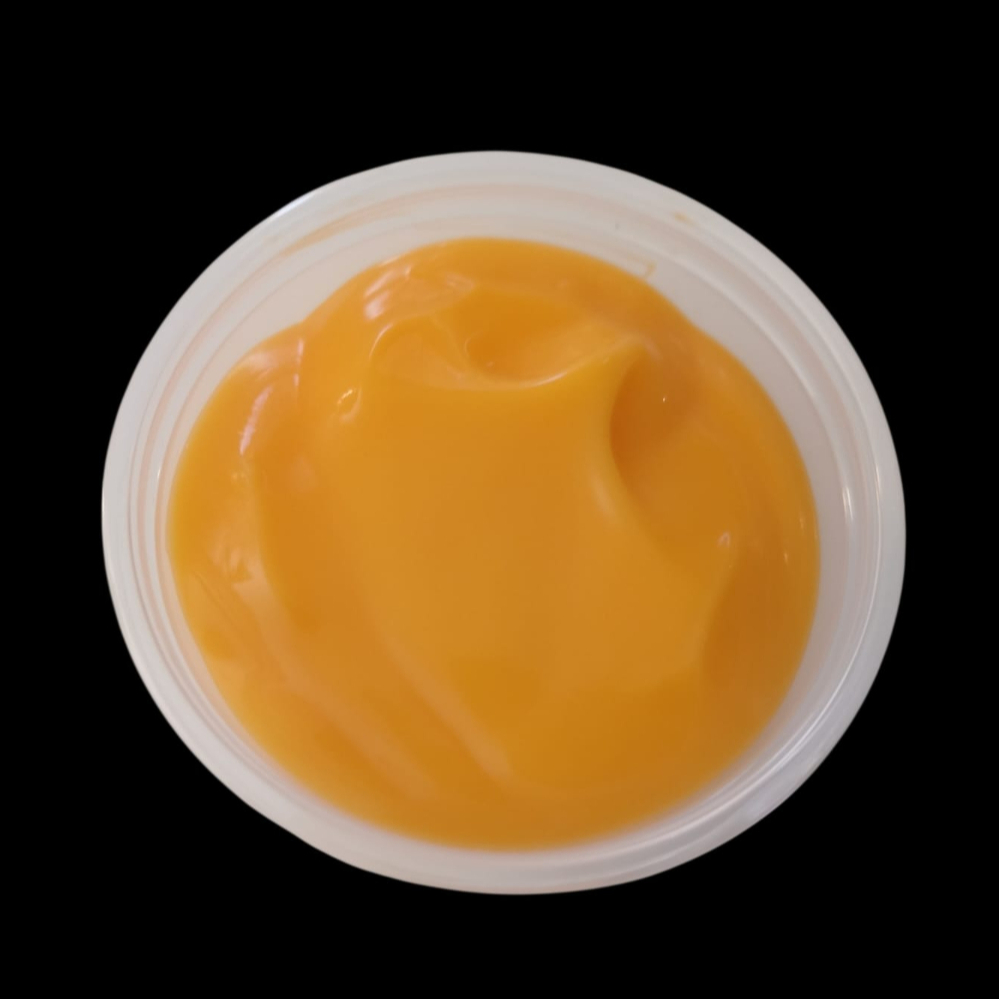 Queso amarillo derretido, cremoso y perfecto para acompañar alitas o papas.
