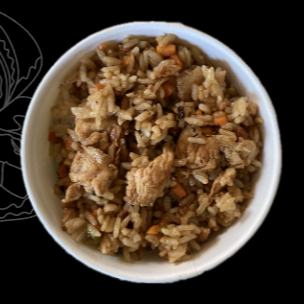 Nuestro delicioso arroz frito con pollo.