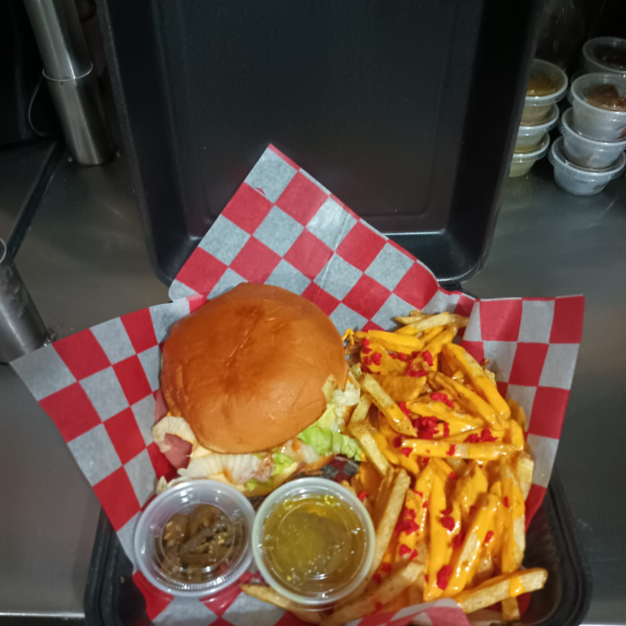 DOS HAMBURGUESAS, FAJITAS Y PAPAS A LA FRANCESA