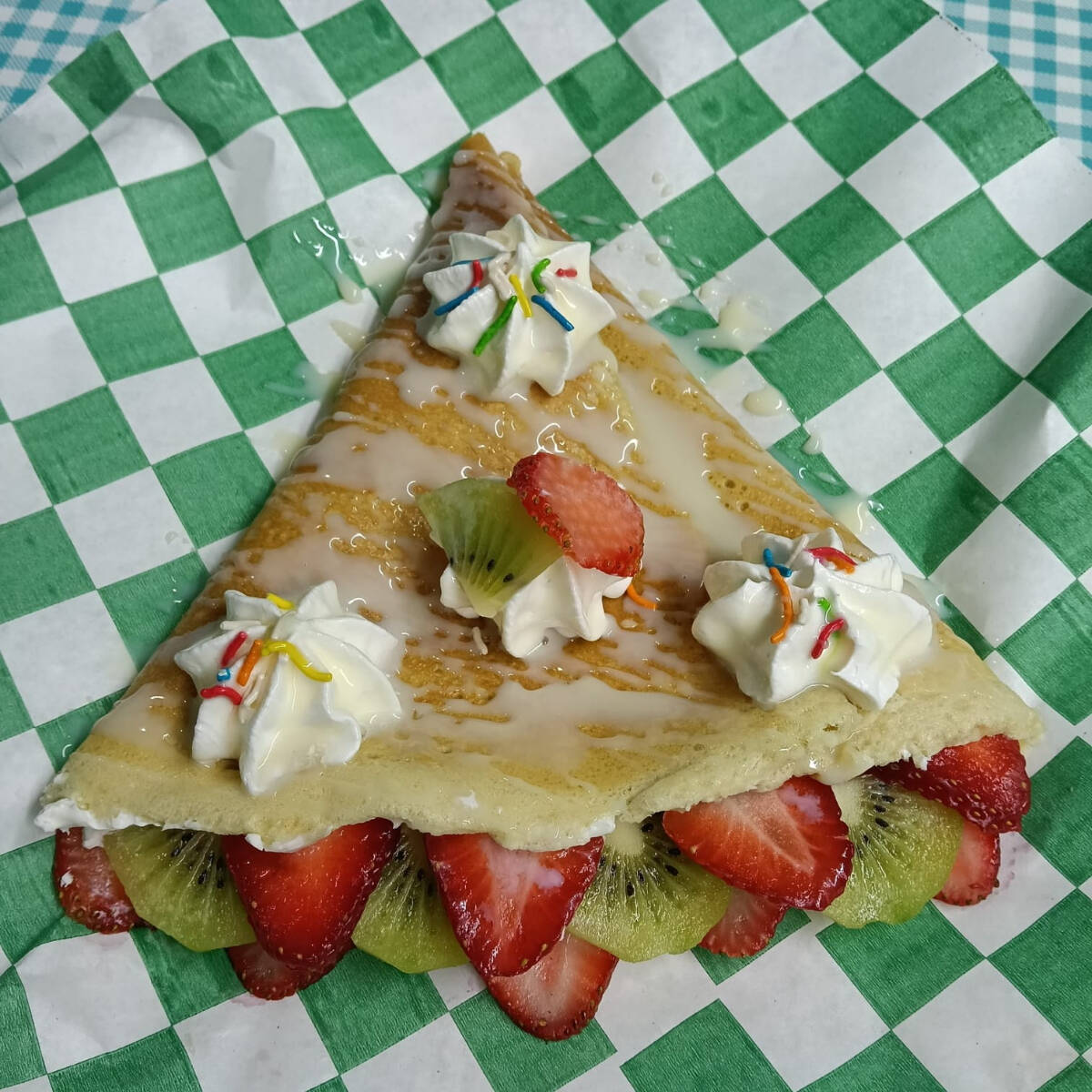 Base de queso Philadelphia con kiwi natural, cubierta de lechera y crema chantilly