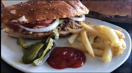 Carne de puerco, queso, tomate, jamón, cebolla. lechuga y aguacate.