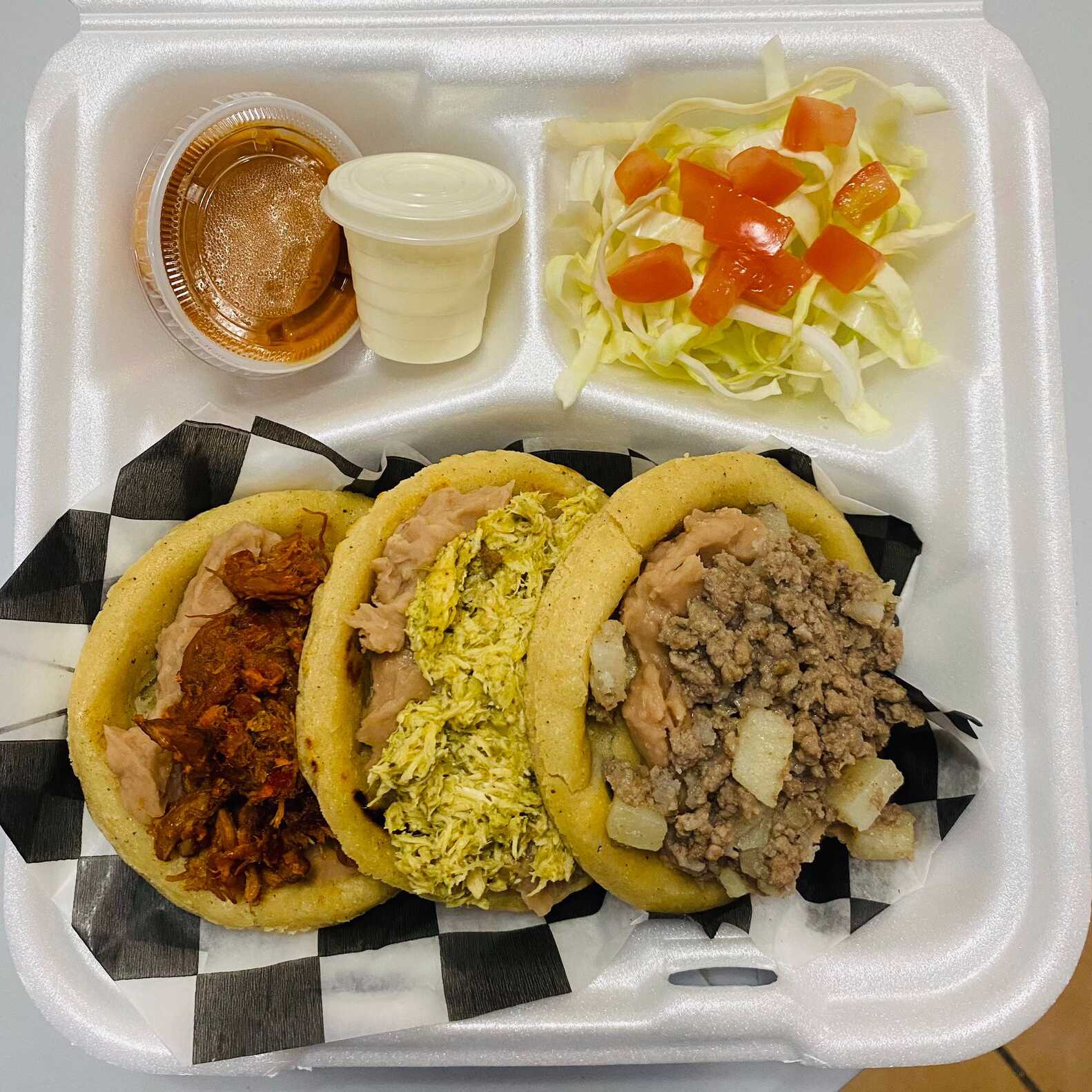 Deliciosa tortilla de maíz gruesa y con el borde levantado con piso de frijoles refritos y guiso a elegir. (3 Piezas)