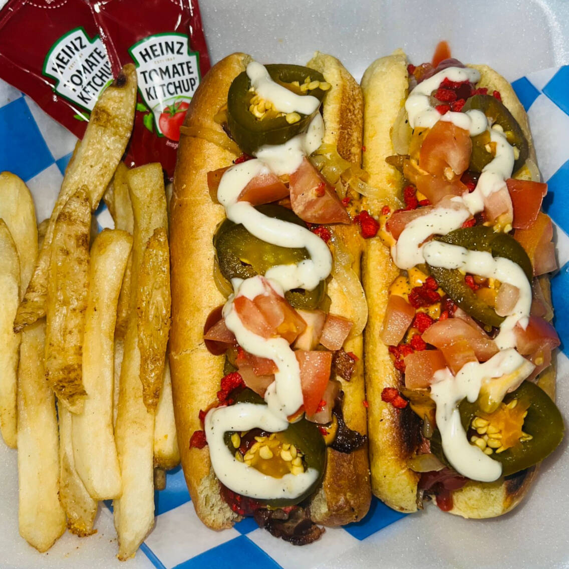 2 HOTCHOS CHICOS DE PAVO + PAPAS A LA FRANCESA
