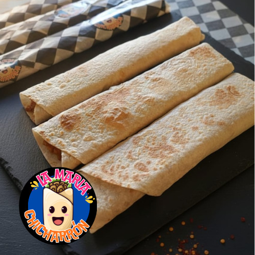tortilla de harina de 30 cm, con delicioso guiso de chicharrón prensado.
