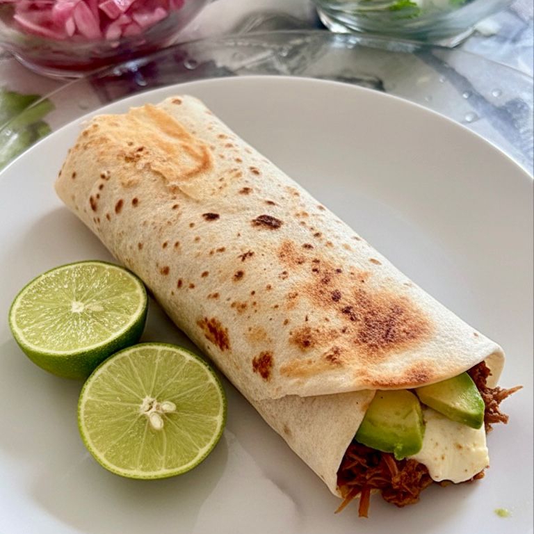 Rico Burrito Relleno de Barbacoa con Mezcla de Quesos y Aguacate