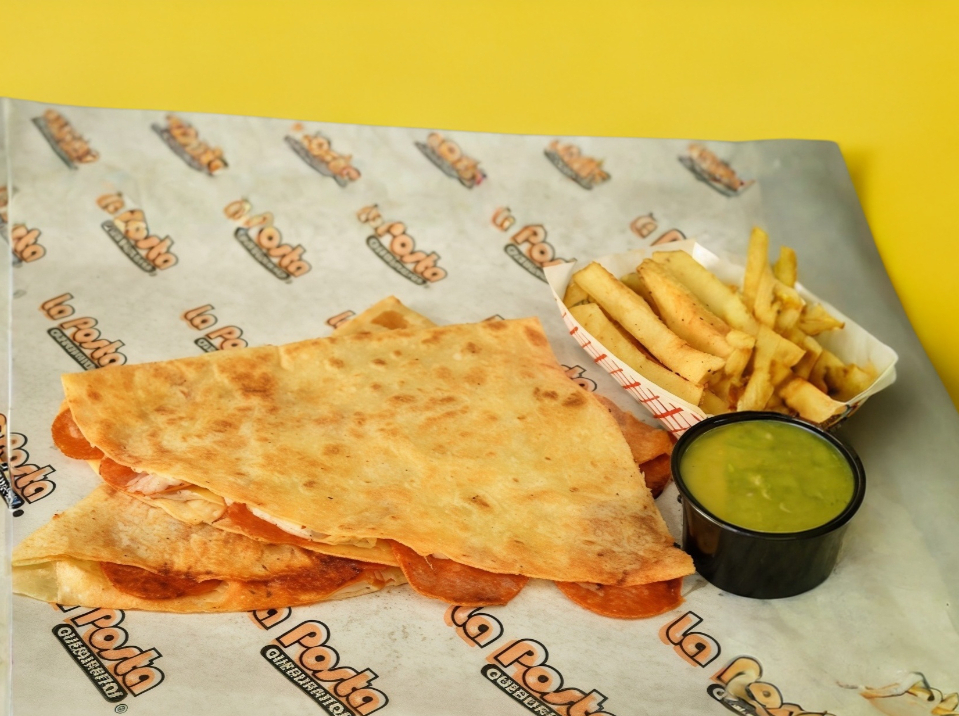 1 Quesadilla, orden de papas y refresco.