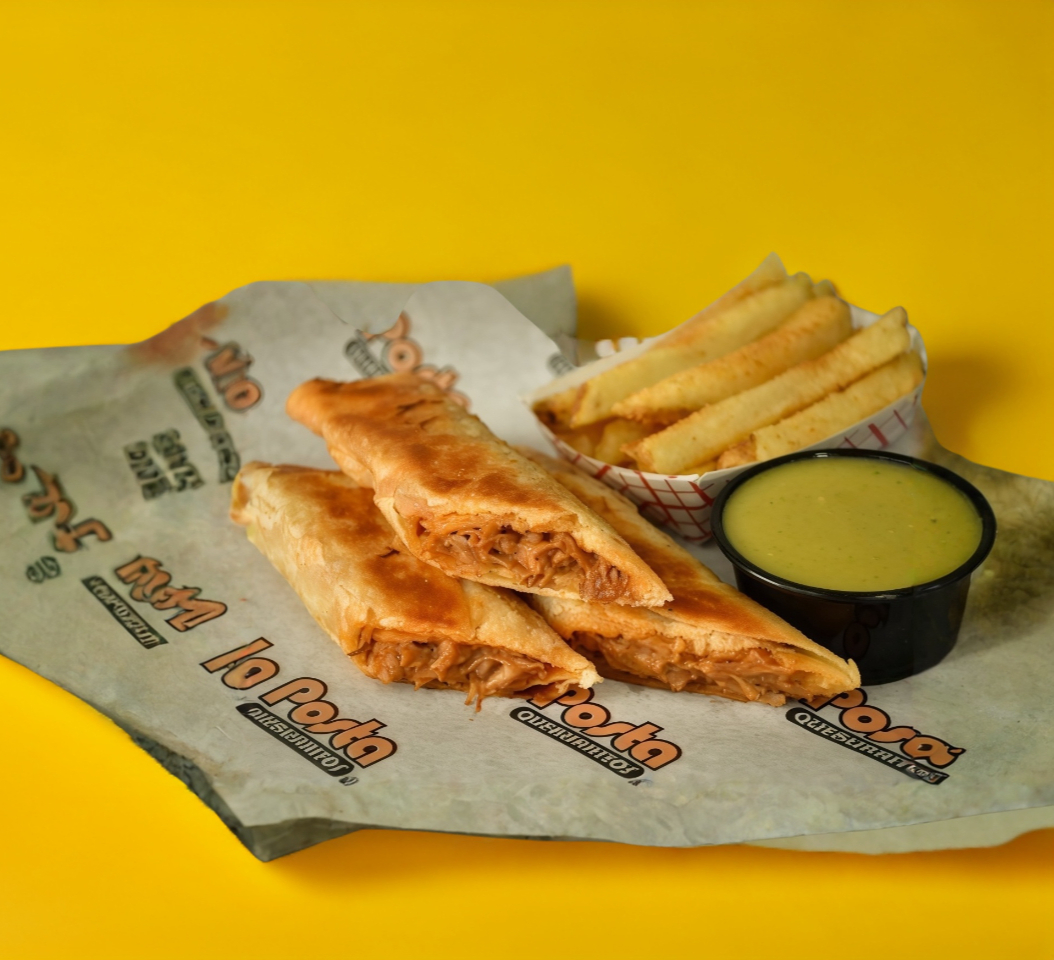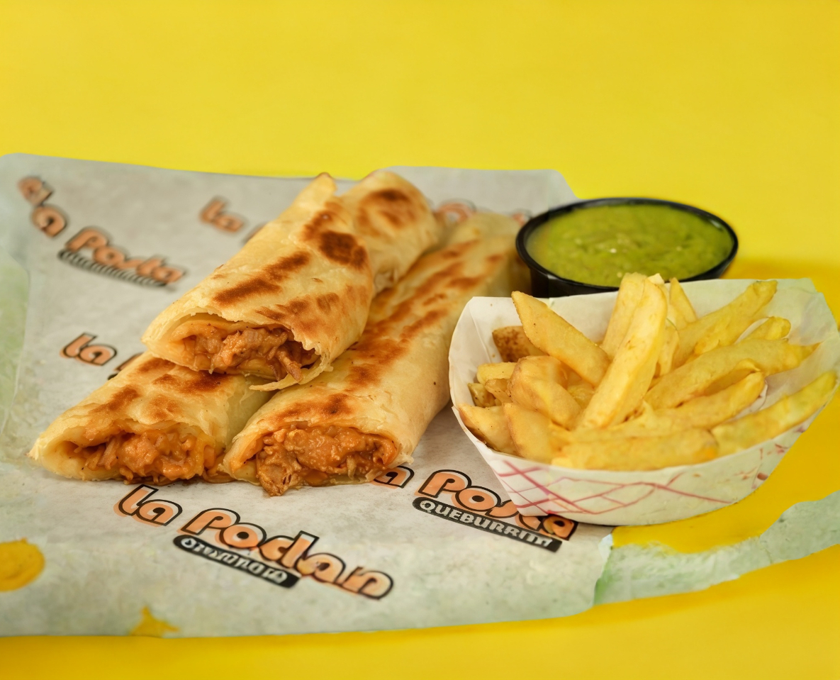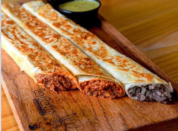 2 Burritos a elegir, 2 quesadillas y 1 orden de papas.