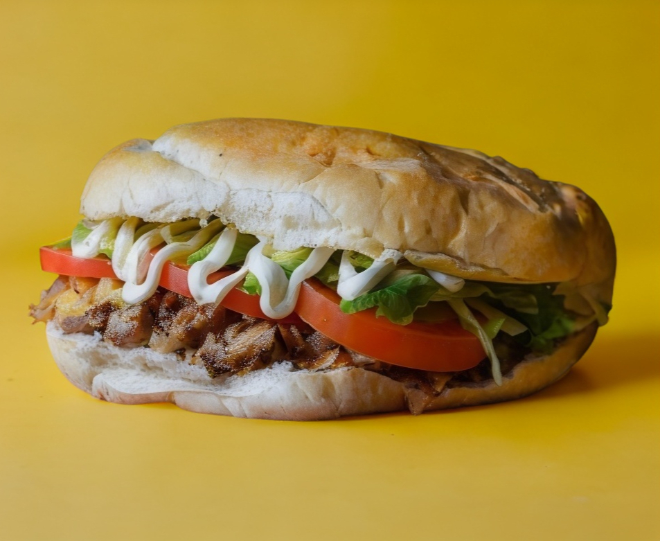 Carne de sirloin, jamón, queso amarillo, lechuga, tomate, aguacate, cebolla y mayonesa.