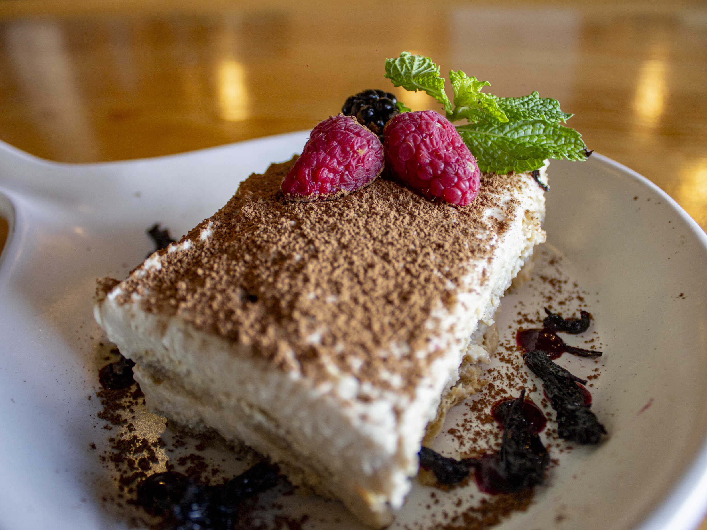 Mix de lechugas, frutos rojos, queso de cabra, rollitos de pepino, ajonjoli, vinagreta de naranja, arugula y reduccion de balsamico.