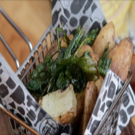 Papas fritas en aceite de romero y hierbas finas acompañadas de aderezo de ajo.