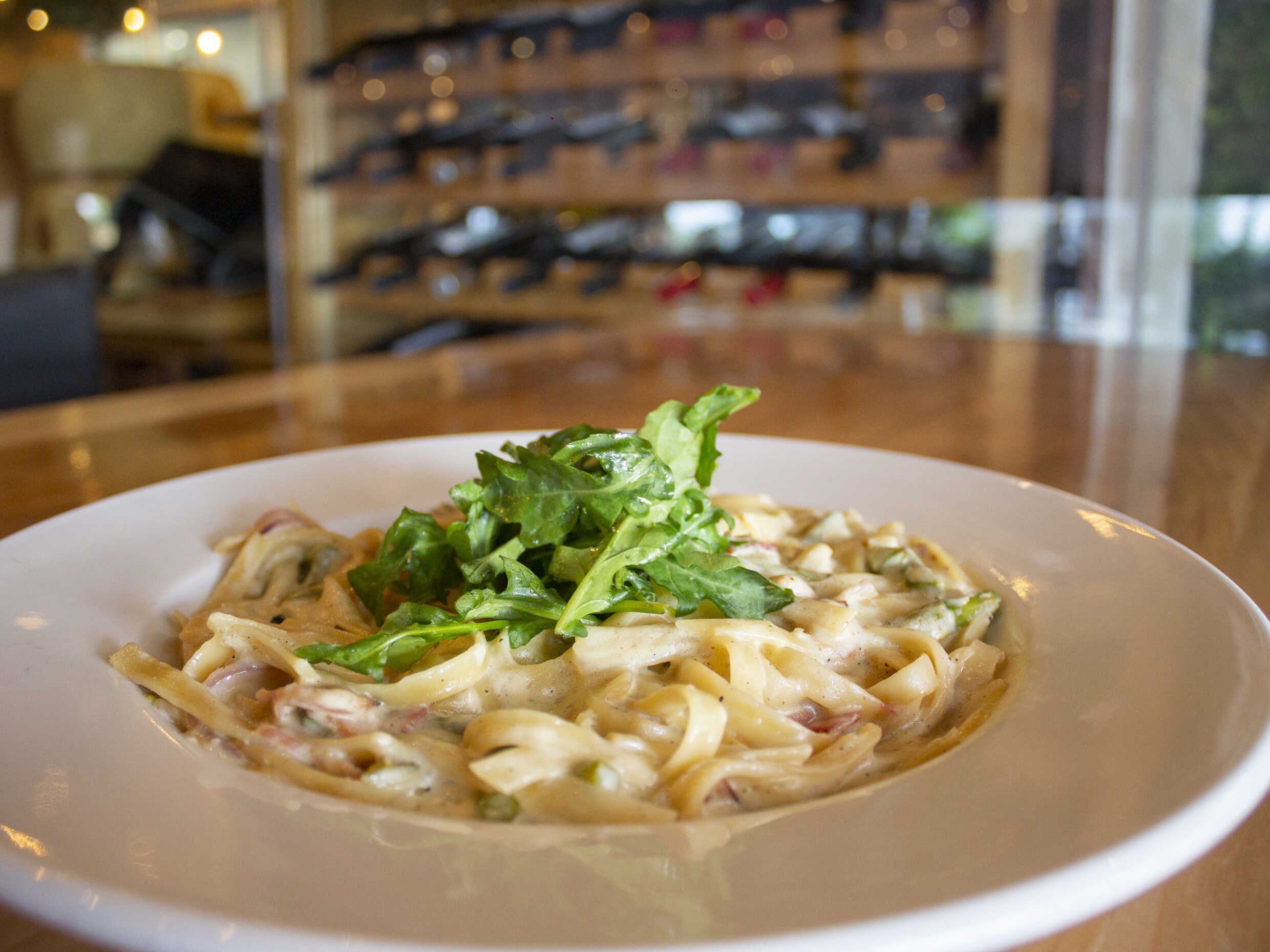 Fettuccini en salsa tradicional hecha a base de tocino, esparragos, cebolla y crema.