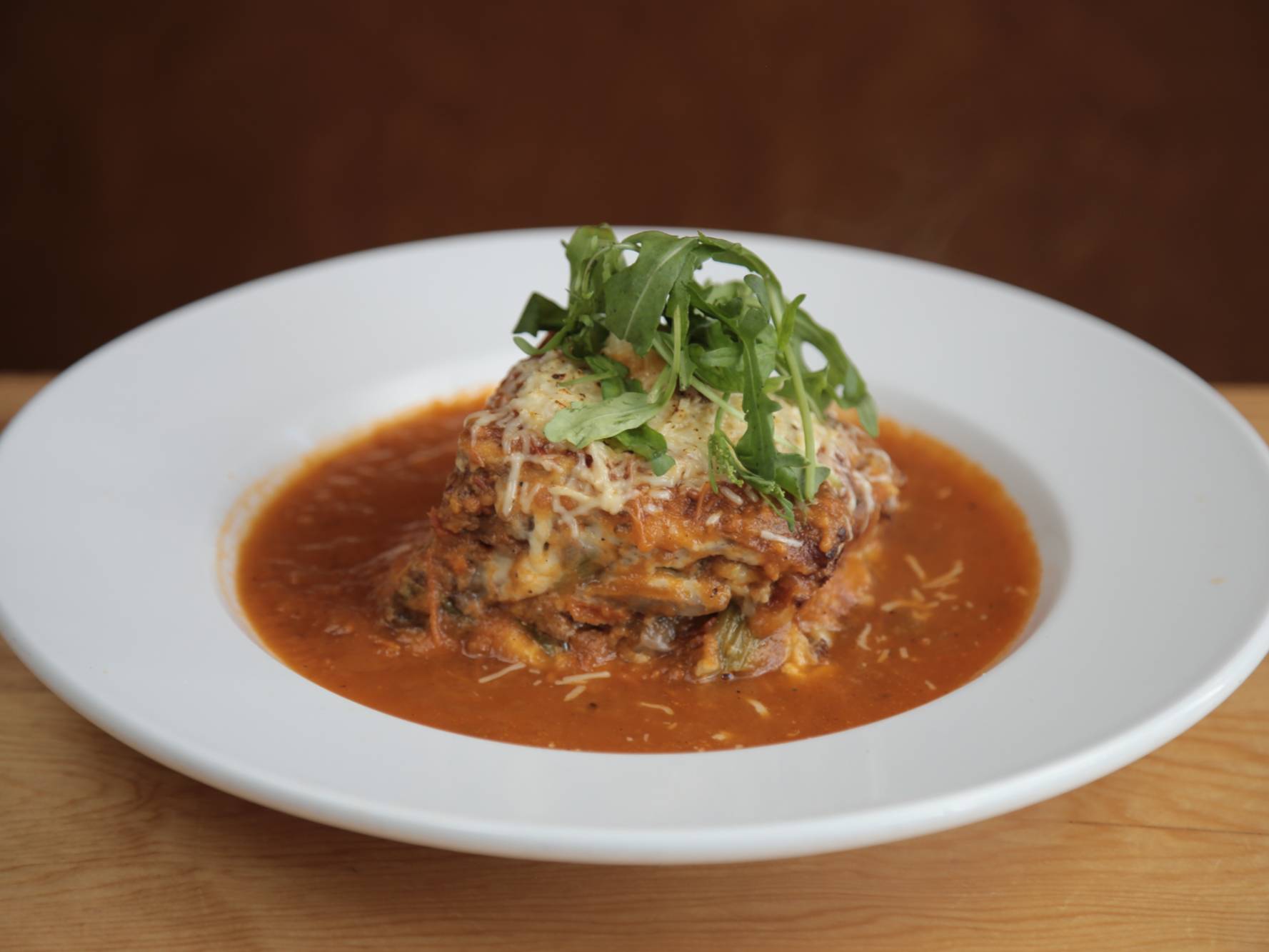 Hecha a base de salsa boloñesa, salsa bechamel y mezcla de quesos.