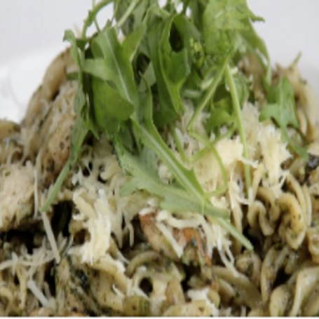Fusilli en salsa hecha a base de albahaca, acompáñala con pollo ó camarón.