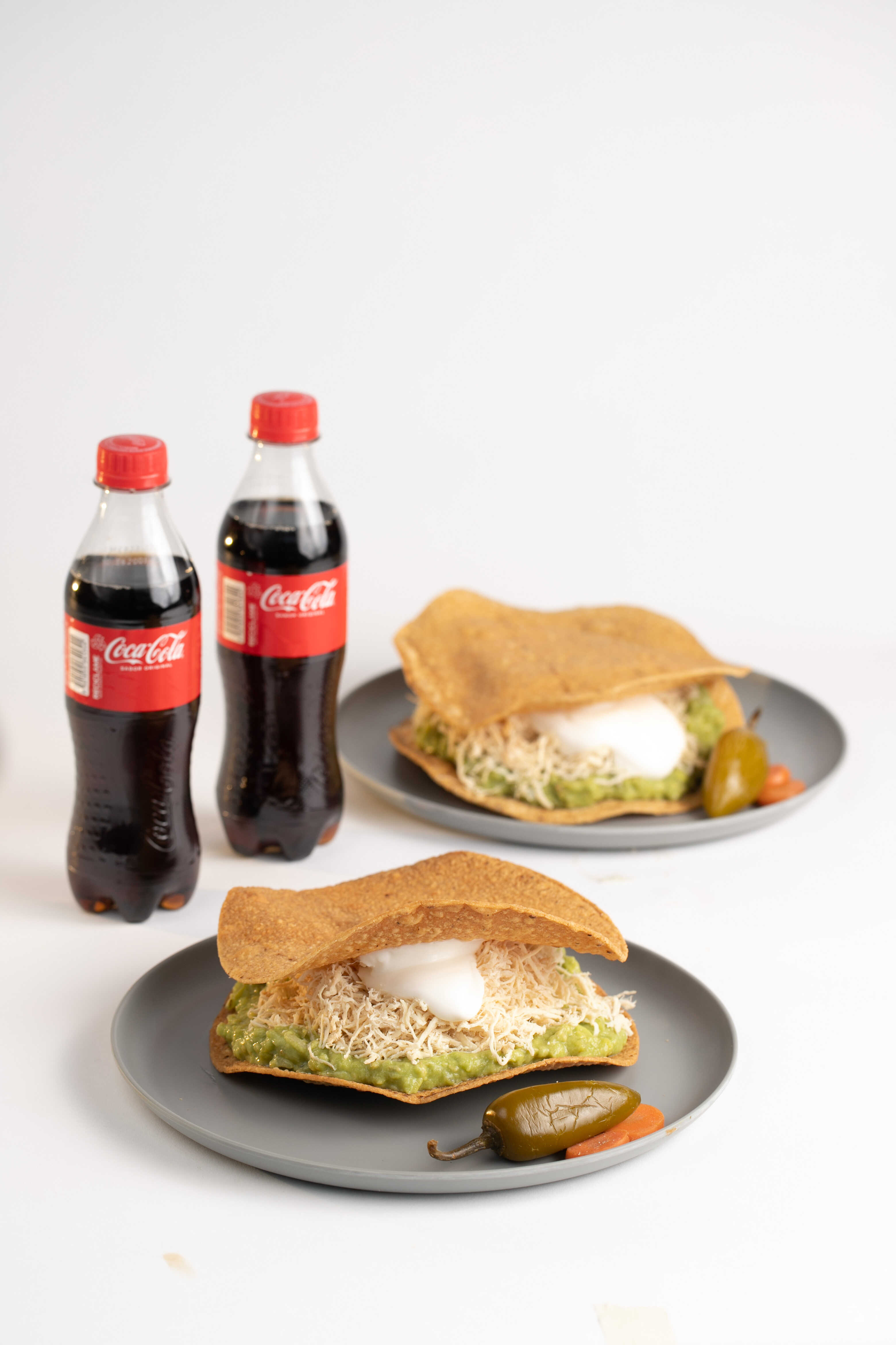 2 Tostadas Gigantes con Guacamole, Pechuga de Pollo desmenuzada y Crema + 2 Refrescos 355ml.