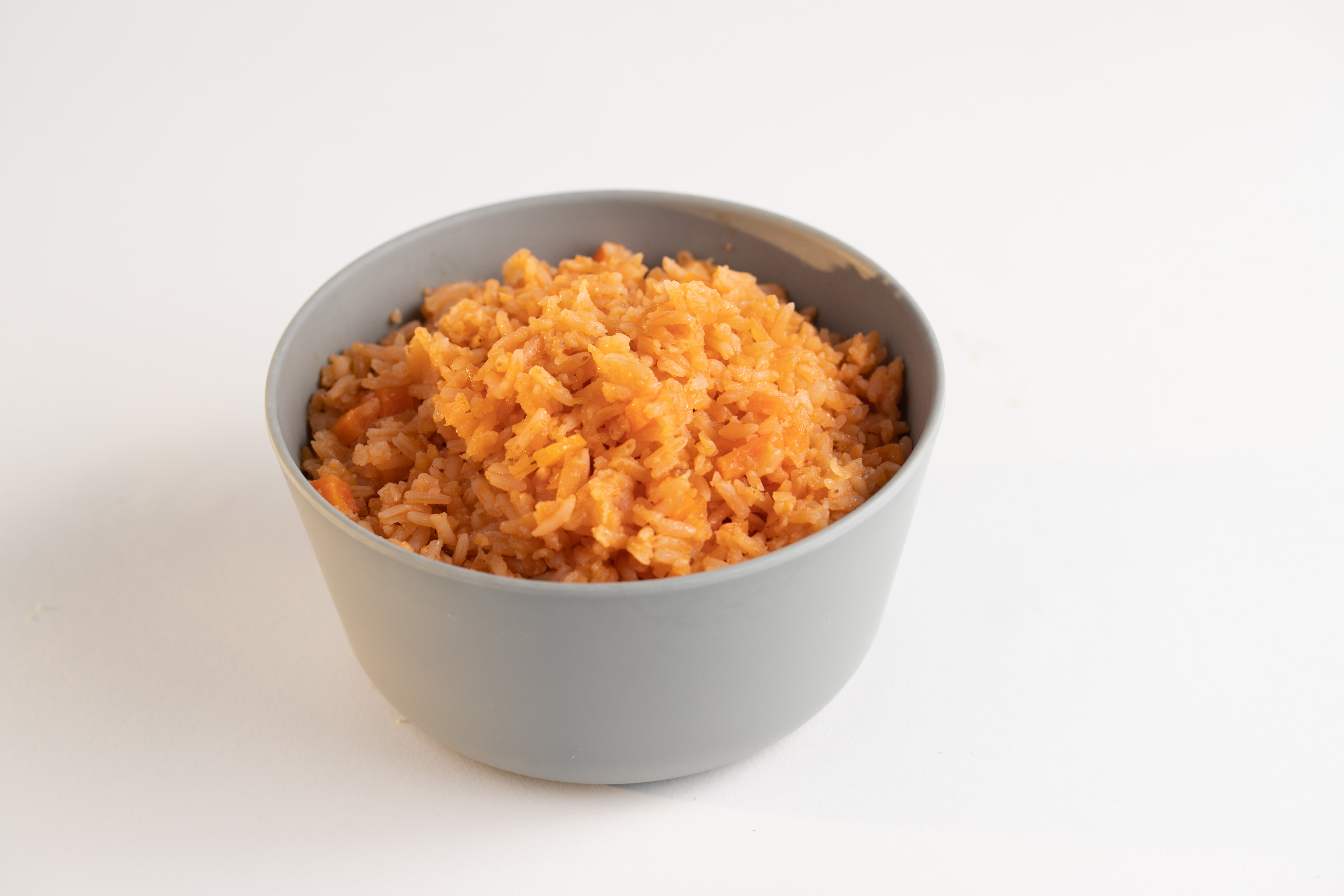 1 Litro de Consome, Arroz, y Pechuga de Pollo desmenuzada.