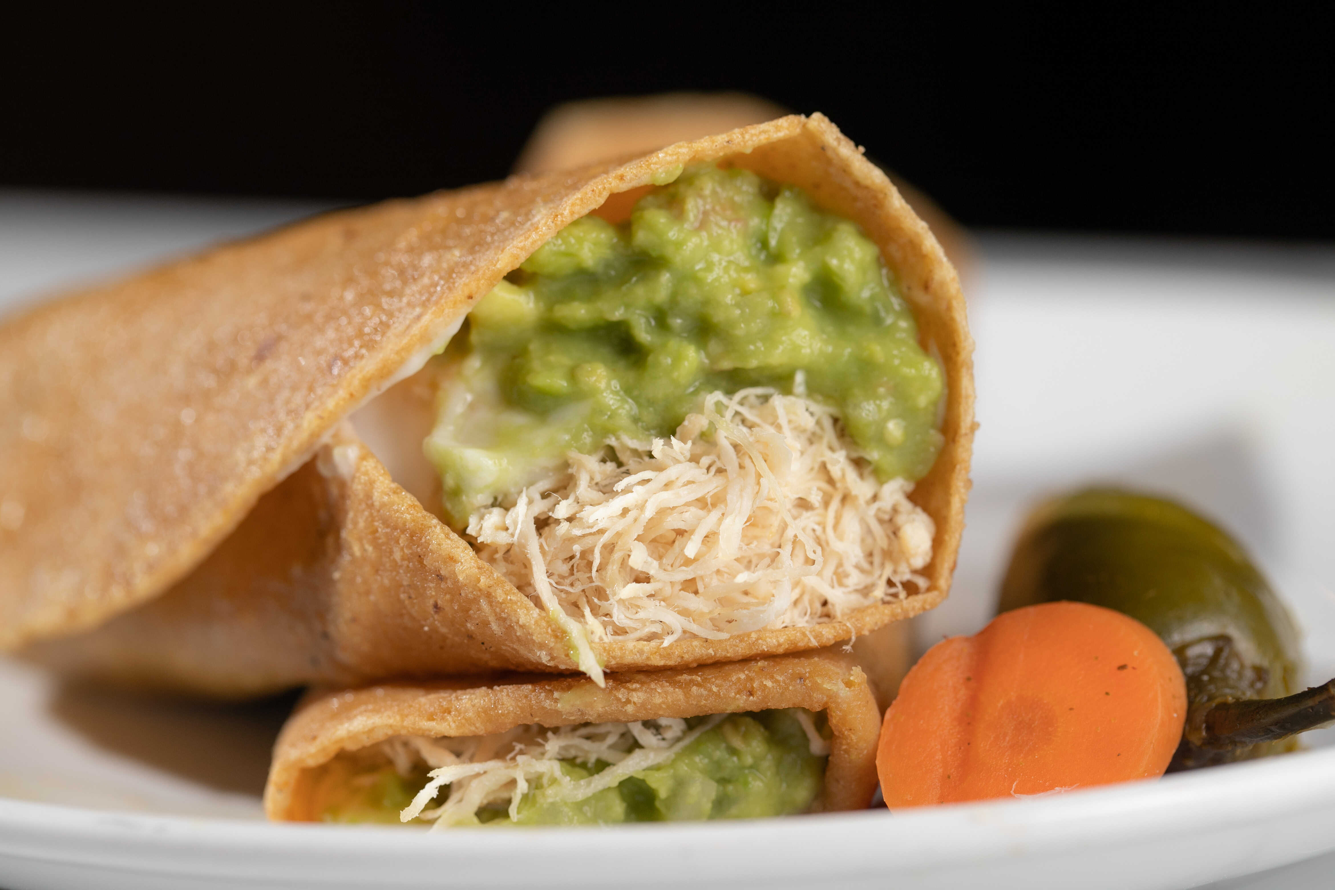 1 Taco Gigante con Aguacate, Pechuga de Pollo desmenuzada y Crema.