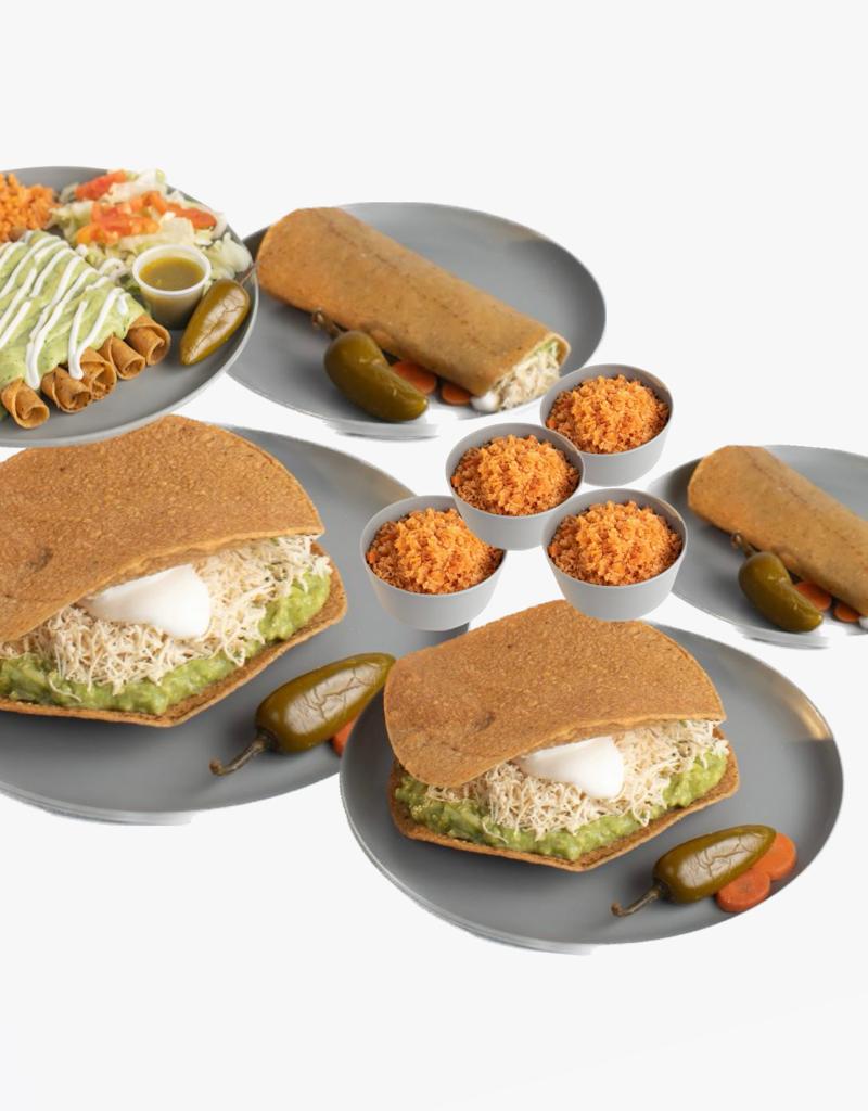 2 Tostadas Especiales + 2 Tacos Especiales + 1 Orden de Flautas + 4 Complementos a elegir