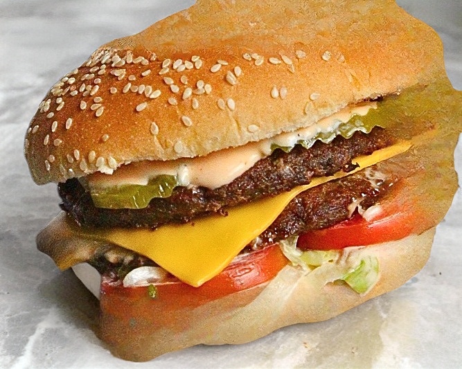 Hamburguesa doble con pan de ajonjoli,carne de res 240gr,tomate,lechuga,queso americano,cebolla,pepinillos y aderezo de la casa.