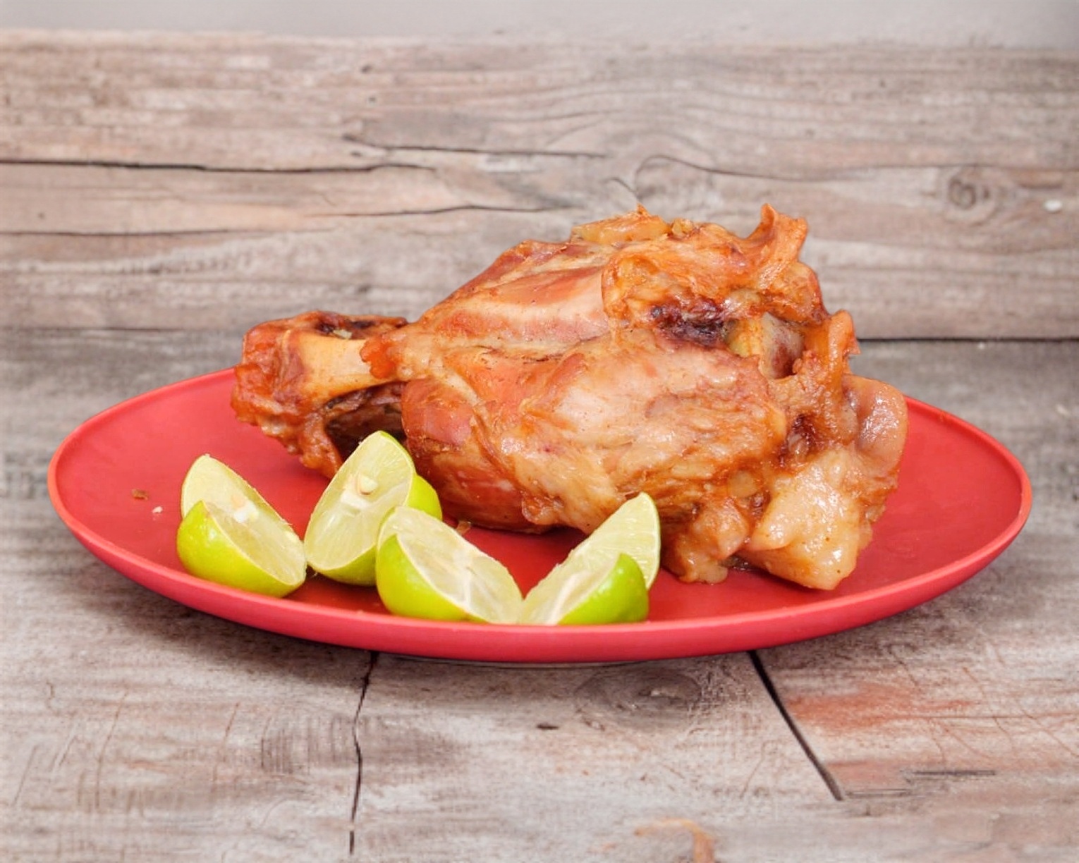 Chamorro acompañado de tortillas, salsa, limones y pico de gallo