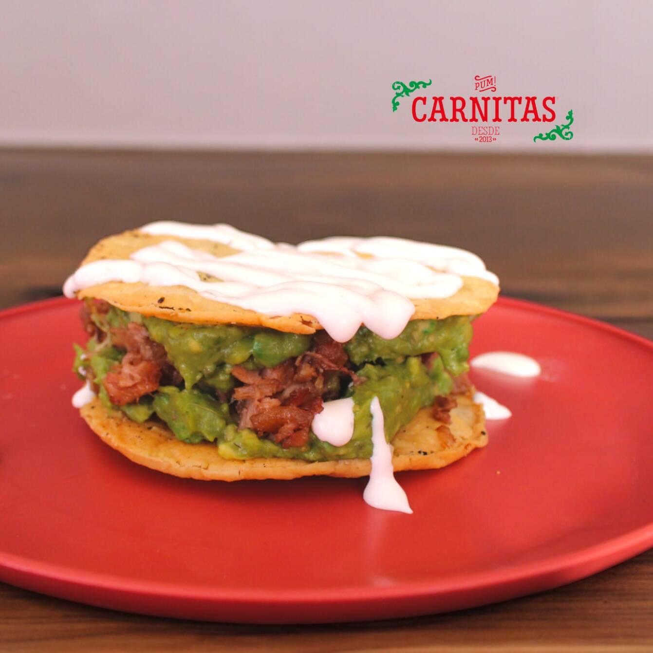 Torta de Carnitas + 1/4 Chicharron de Cachete