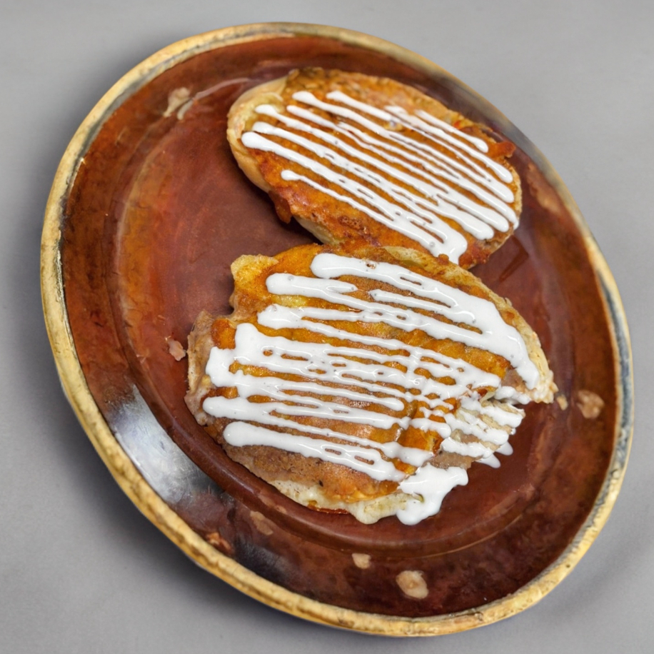 Molletes con guisado casero o chilaquiles verdes o rojos, combinación irresistible con pan crujiente y queso.