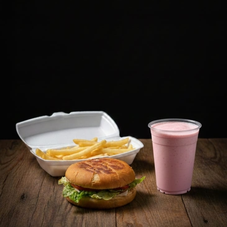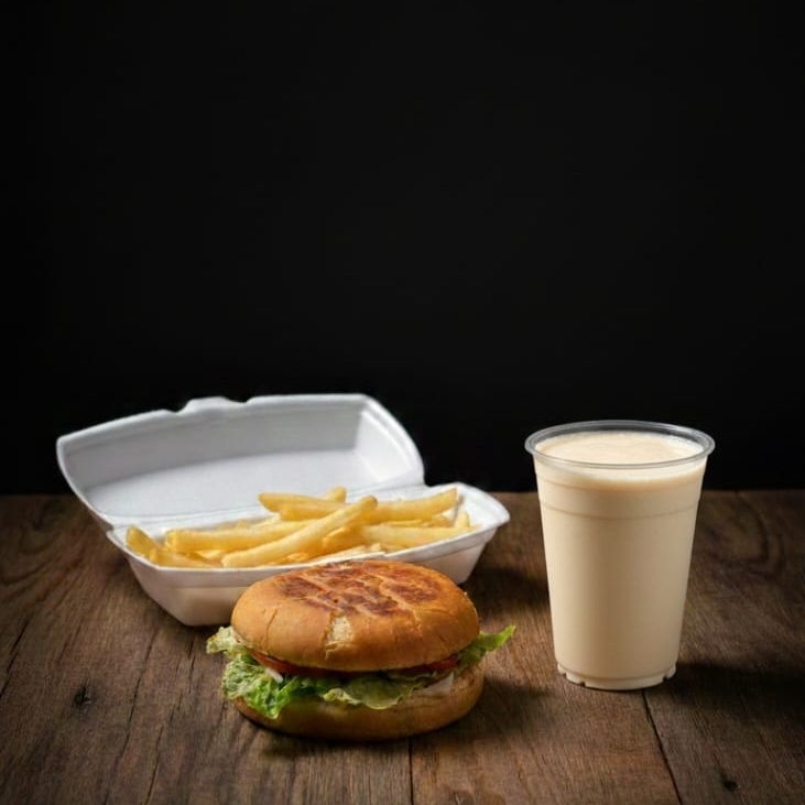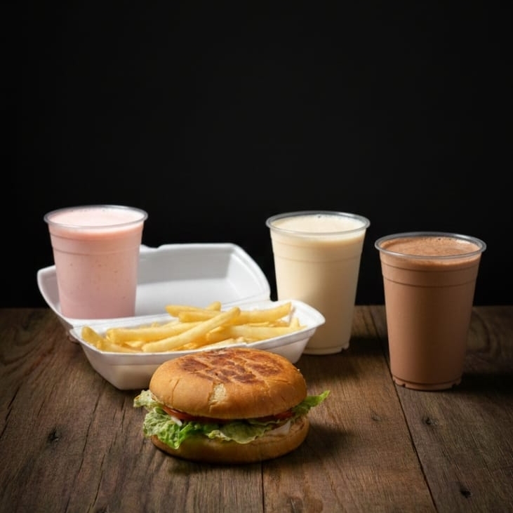 Malteada (Chocolate, Vainilla o Fresa), Hamburguesa Res Papas Francesa.