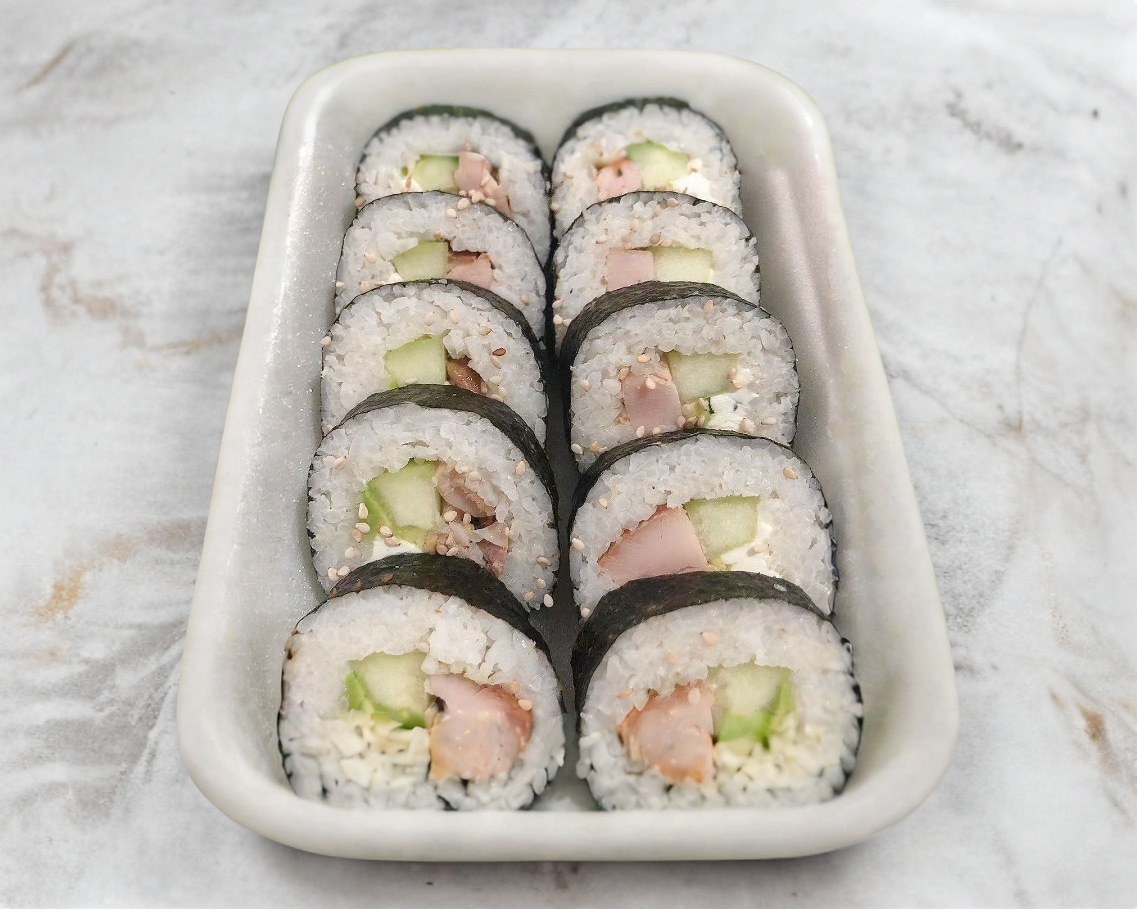 Surimi, aguacate, pepino y queso crema.
