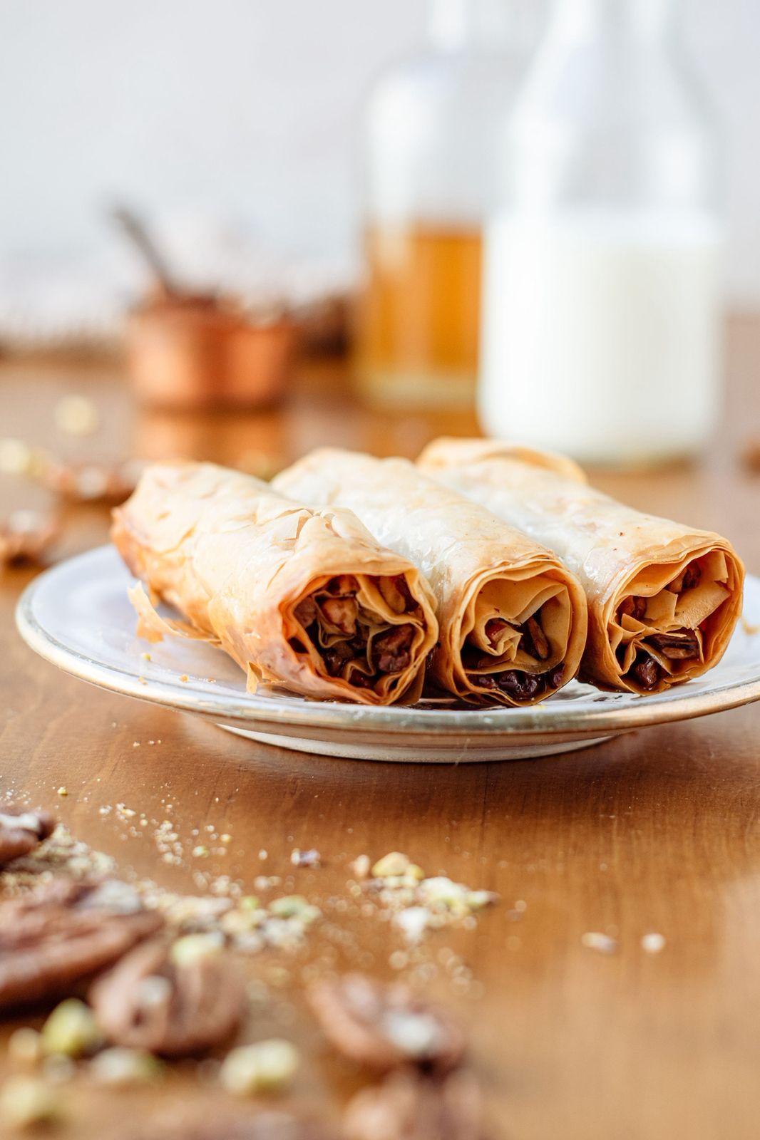Delicioso dulce típico de pasta filo rellena de nuez y bañado en miel árabe.
