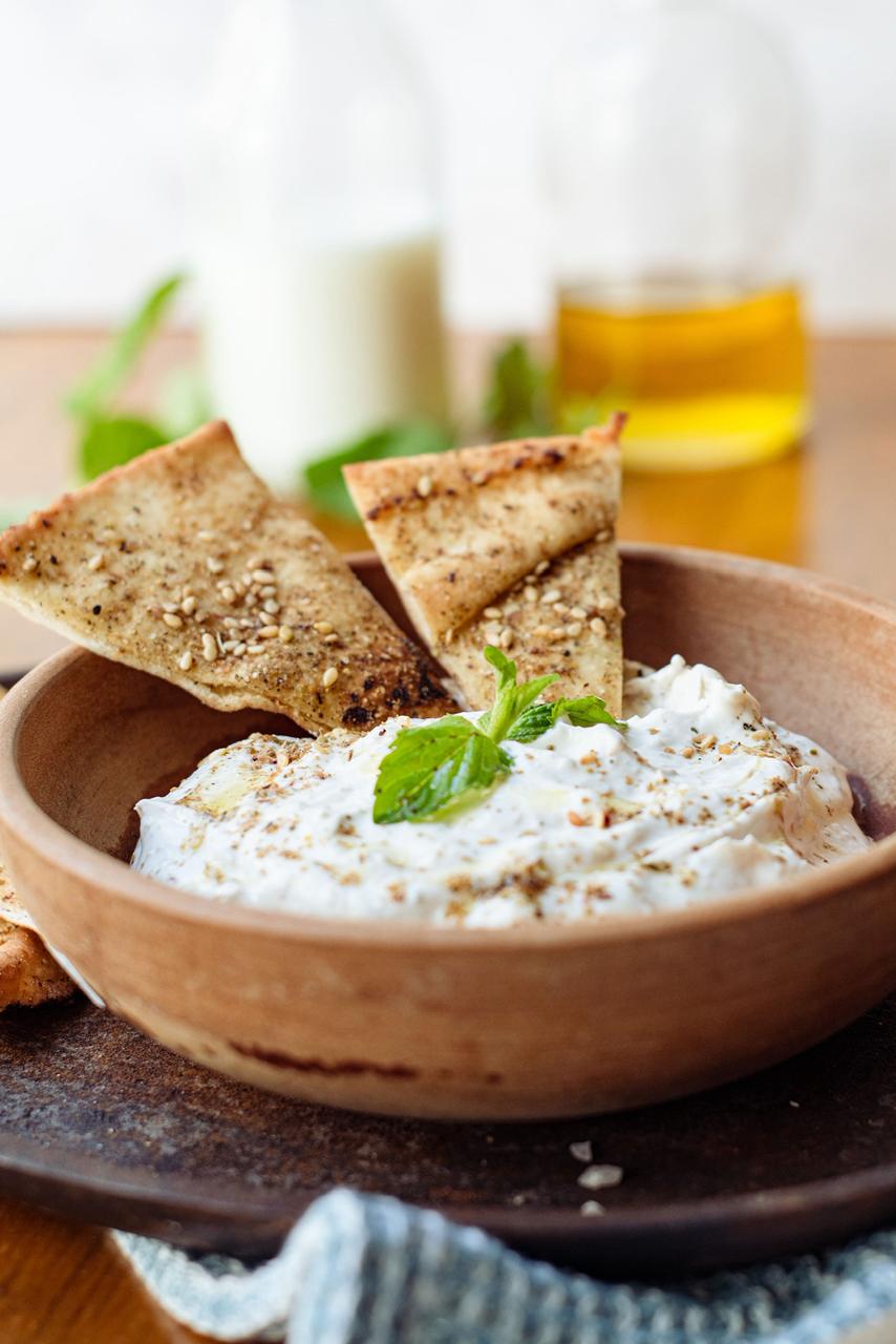 1/4 De litro de jocoque seco preparado con especias árabes y aceite de oliva.