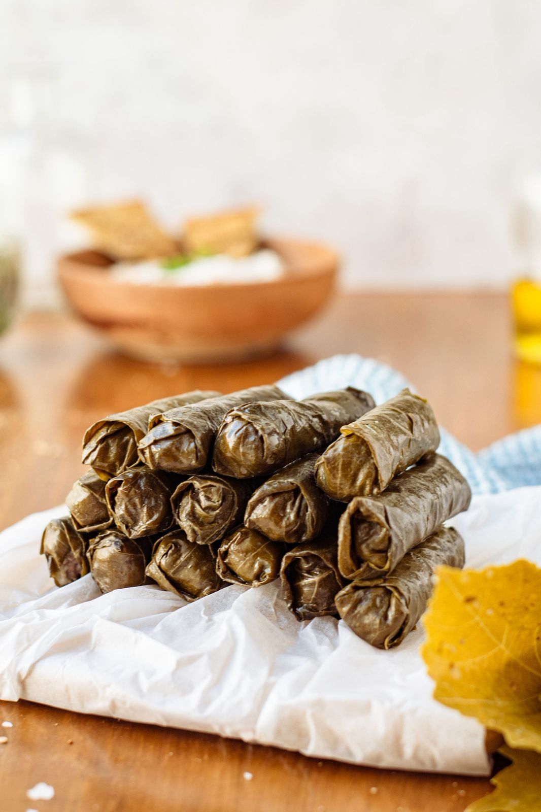 12 Hojitas de parra, rellenas de carne de res con arroz.