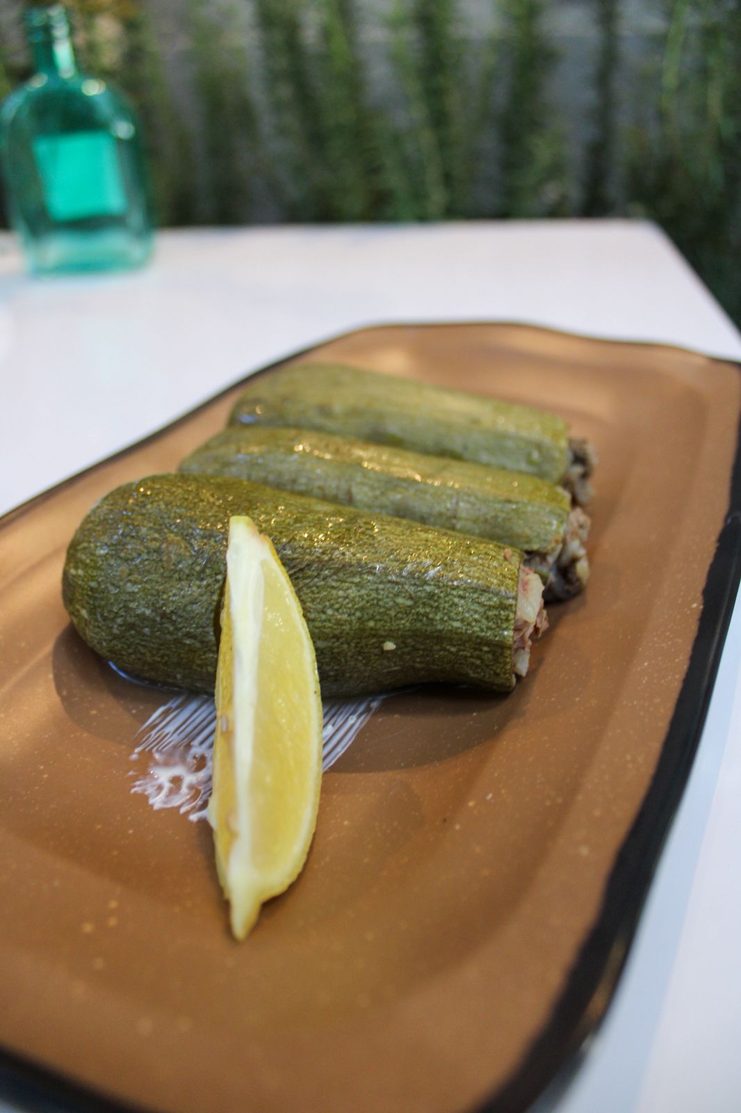 2 Calabacitas rellenas de carne y arroz.