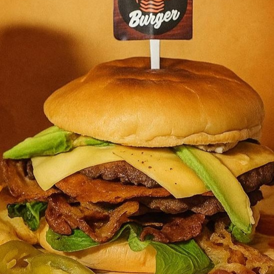 Doble Carne, Pan Brioche, jamón, tocino, aguacate, lechuga, queso manchego, queso americano, lechuga, mostaza, catsup, mayonesa, (salsa ranch sriracha, aparte)