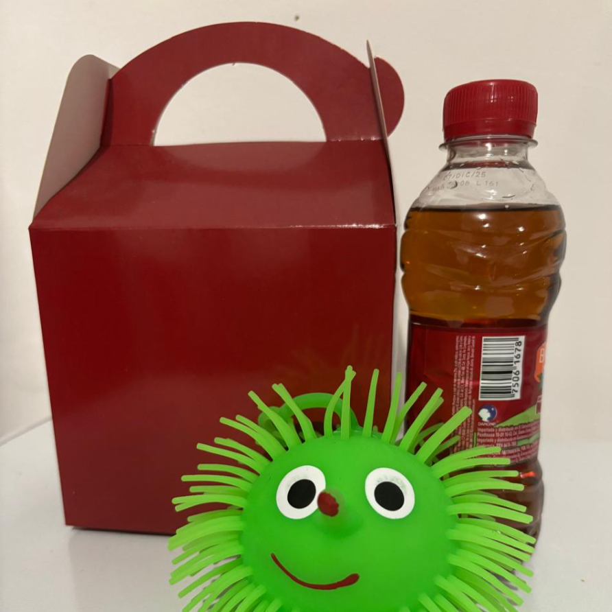 6 nuggets, 150 gms de papás clásicas, bebida infantil, un juguete