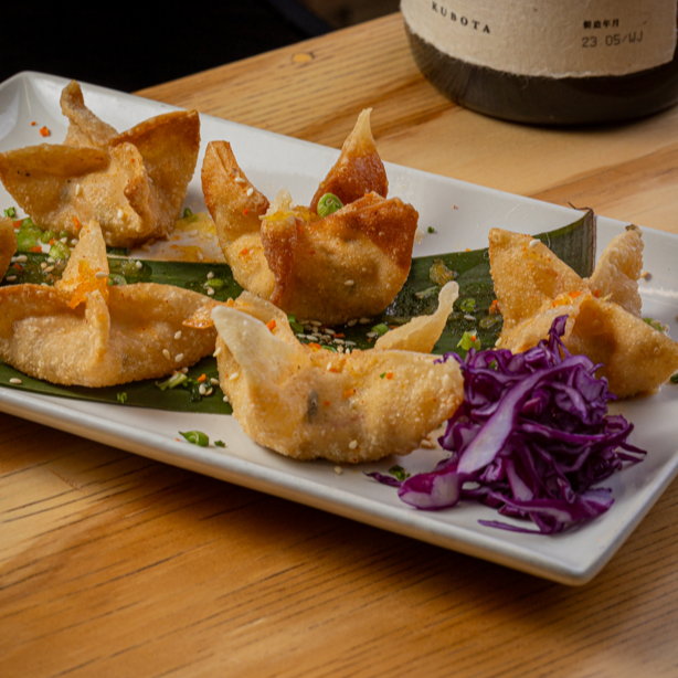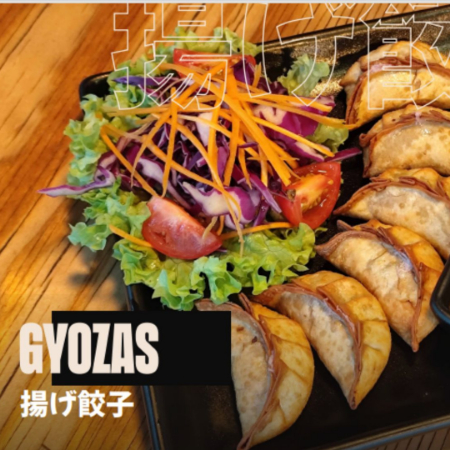 Pequeñas empanadas japonesas hervidas y asadas, rellenas de verduras con pollo, cerdo y res.