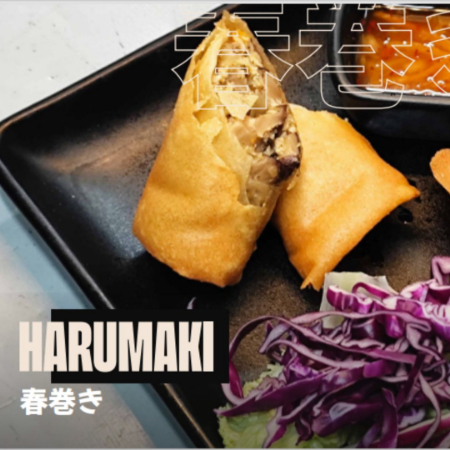 Rollos primavera rellenos de verdura y pechuga de pollo.