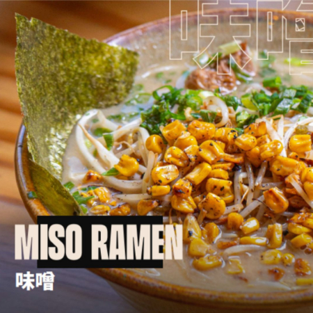Se agrega base de miso con germen de soya, cebolla, elote, charsiu y cebollín.