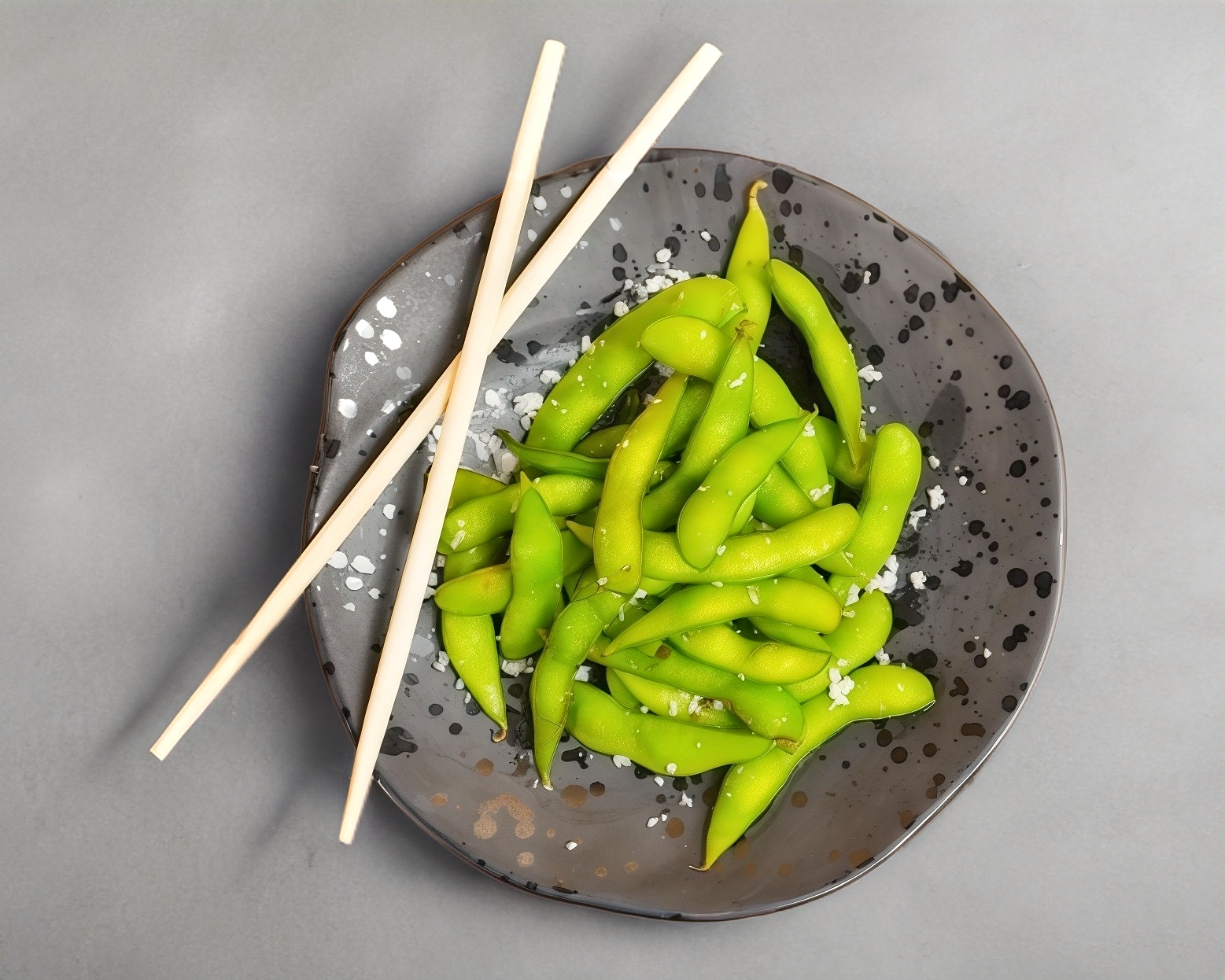 Frijol de soya hervido con nuestra deliciosa salsa picante.