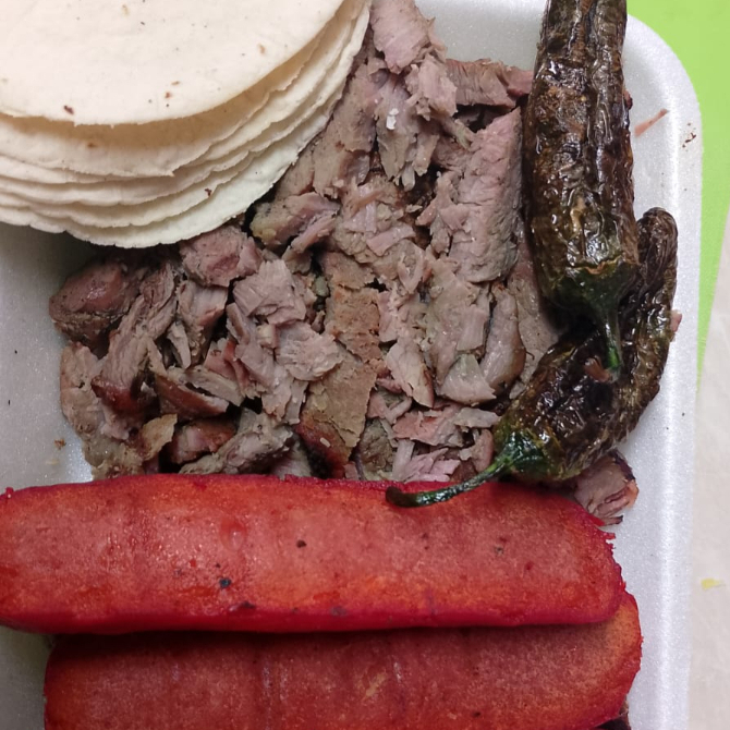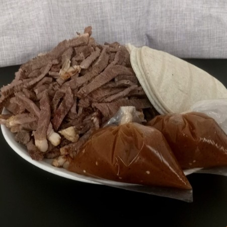 1kg de carne asada, salsa tatemada y porcion de tortillas