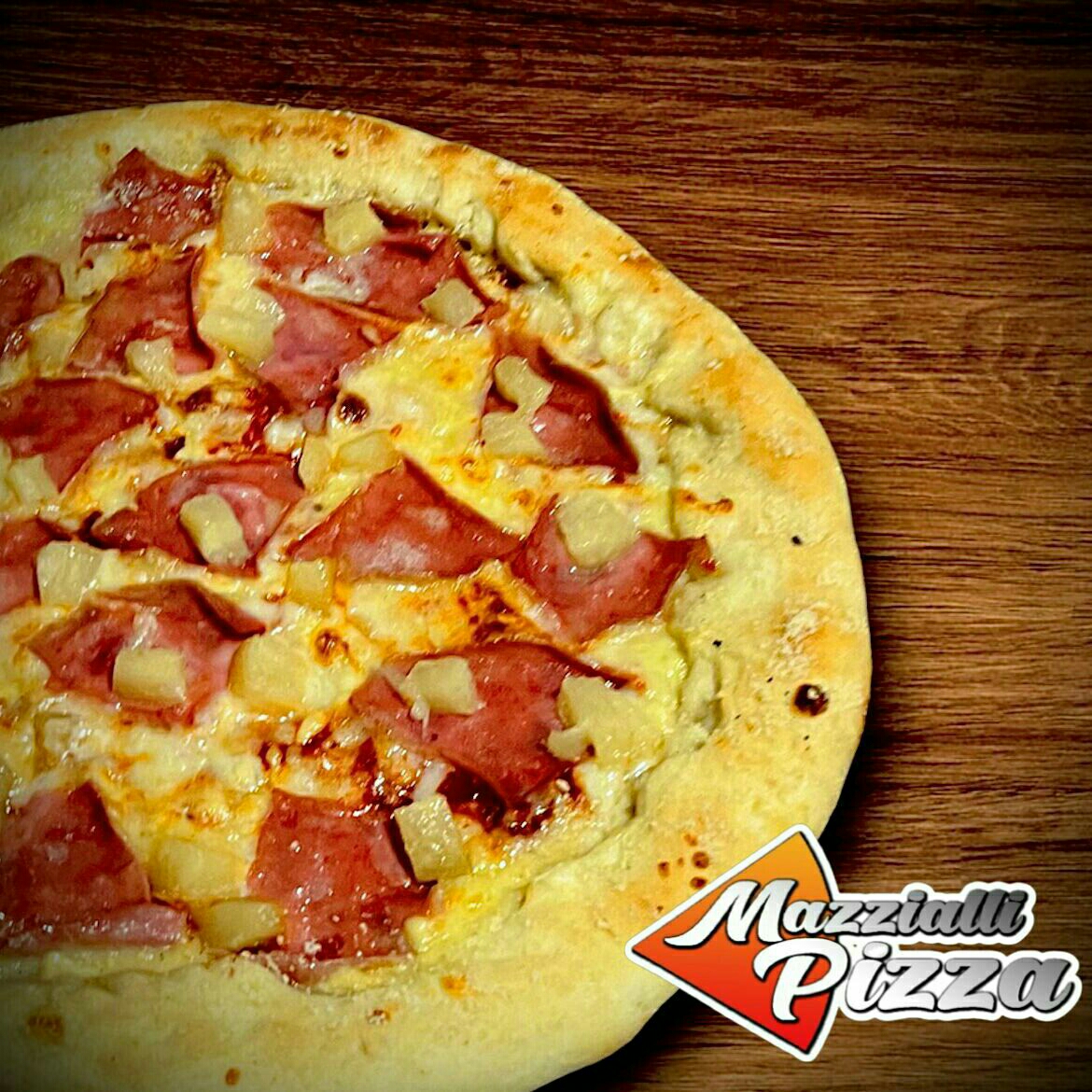 MASA CRUJIENTE CON ORILLA RELLENA DE QUESO, SALSA DE TOMATE ITALIANA Y MEZCLA DE QUESOS, JAMON DE PAVO Y TROZOS DE PIÑA