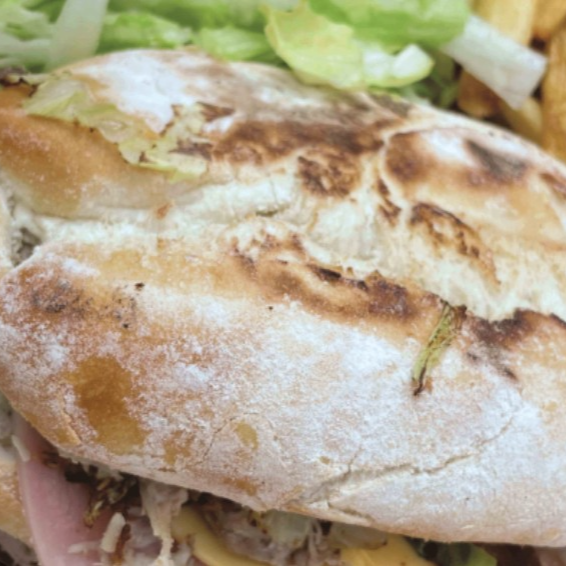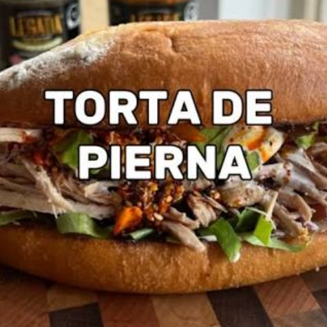 Torta de pierna con aguacate, lechuga,jamón, queso , cebolla,tomate