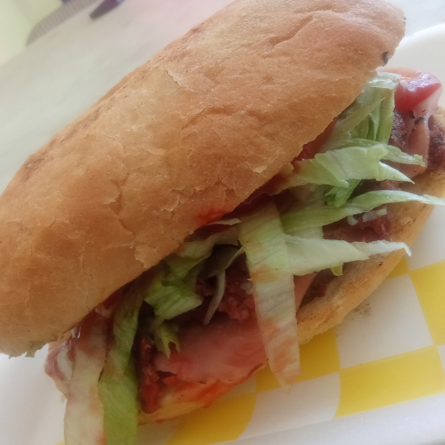 Torta especial con bistec,frijoles fritos ,salchicha ,lechuga,tomate ,queso ,pico de gallo 🍅 aguacate 🥑😋
