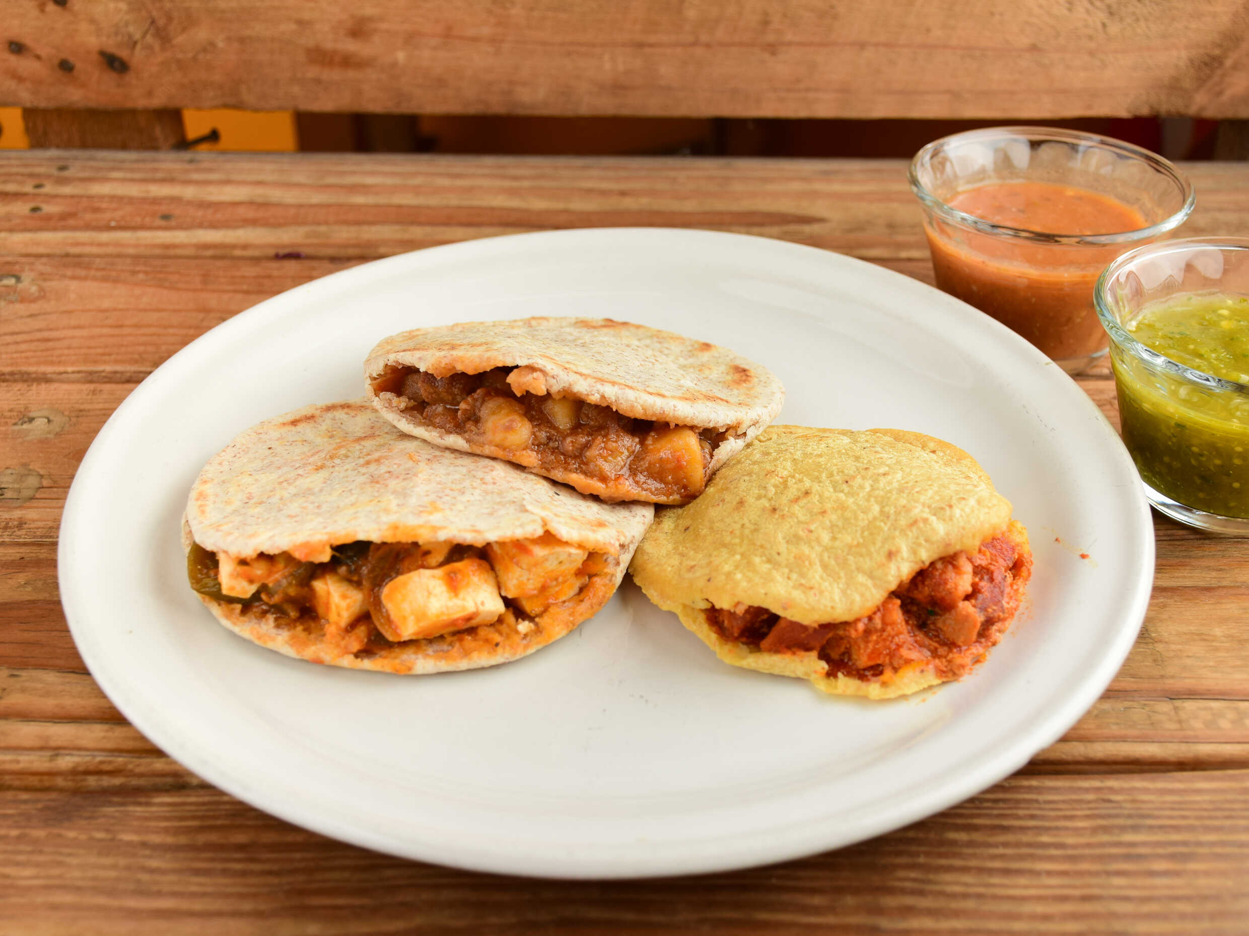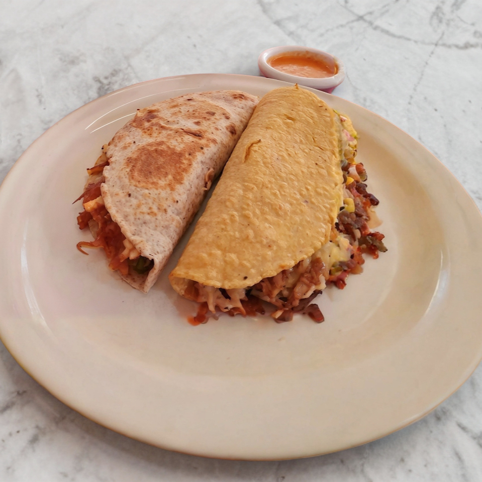 Gordita de maíz ( 1 pieza) recién hechas de maíz, rellena a tu elección, bolsita de salsa picante aparte .